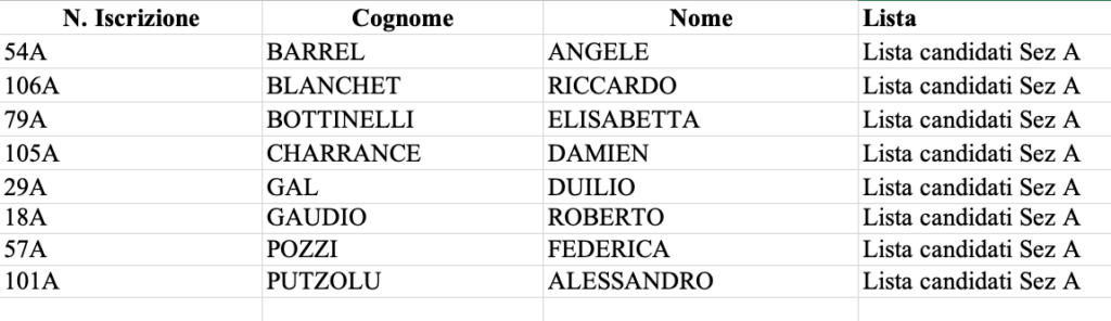 Riportiamo di seguito le candidature pervenute, al fine di garantirne la più ampia diffusione possibile.